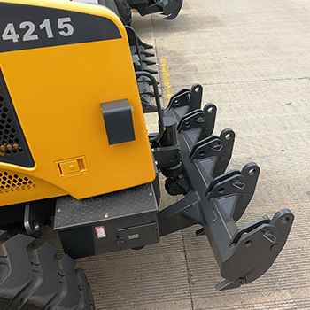 摇杆式松土器,配备5个齿,两个位置安装,更能适应不同土质翻松的要求。适用与硬质路面的翻松。