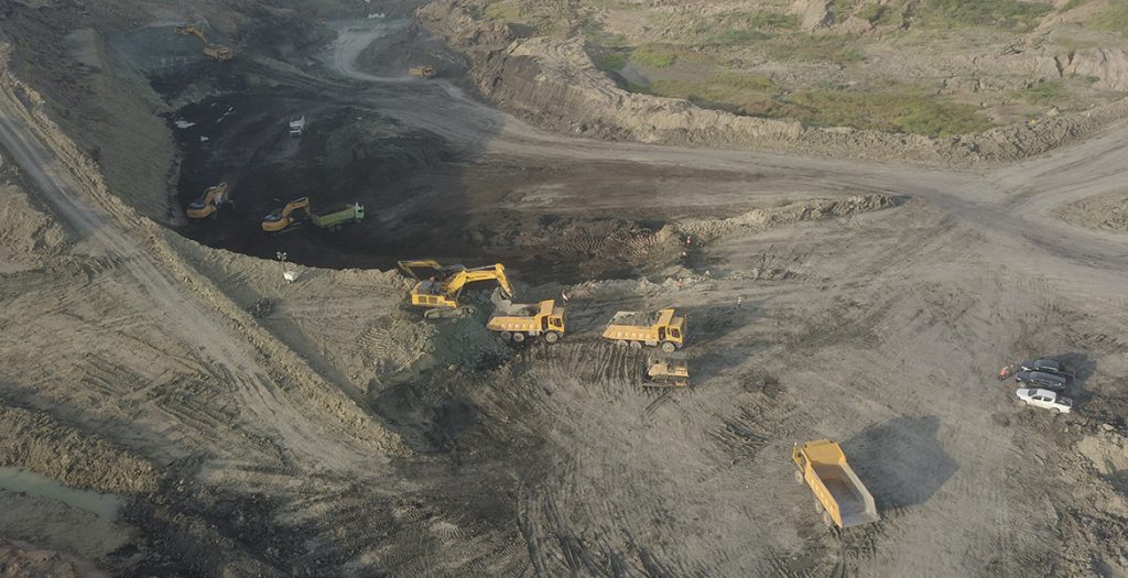 On a coal mine site in Sumatra, dozens of LiuGong equipment are in operation, including excavators that are deployed on digging operations and mining trucks that shuttle coal back and forth, creating a picturesque scene.