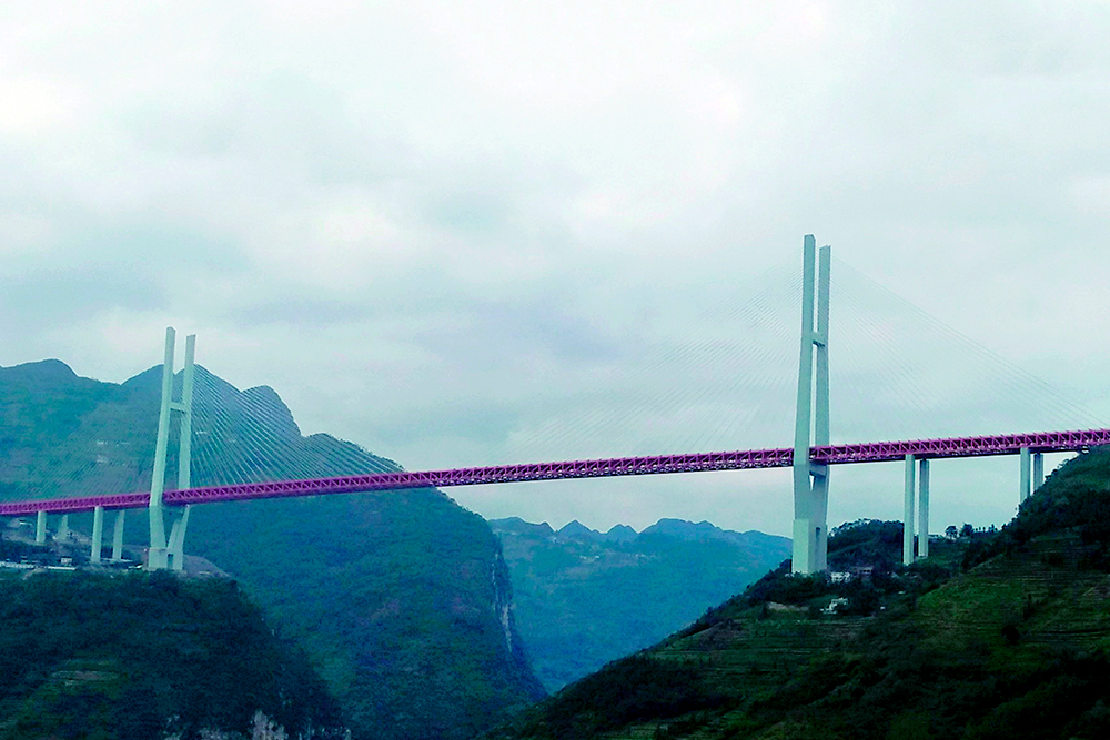 贵州毕都高速北盘江特大桥,世界最高桥,垂直高度565米,相当于200层楼高度,西南地区最大的项目之一。北盘江大桥采用全套的OVM250钢绞线斜拉索体系。