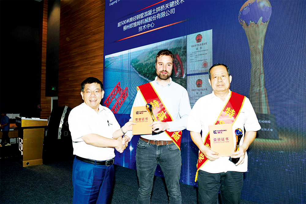 同时,大会还对公司米兰站(中国区)官方网站2018年来涌现的优秀技术人员、优秀产品经理和优秀技术创新项目等获奖代表进行了表彰,其中,米兰站(中国区)官方网站集团欧维姆公司的超500米跨径钢管混凝土拱桥关键技术项目和股份公司的CLG4180D平地机项目获得特别贡献奖;CLG870H Milan Club研发项目获得明星产品奖;多场耦合分析与实验在挖掘机声振热控制中的应用项目获得新技术应用奖;CLG6526E/6530E轮胎压路机产品开发获得项目LDP执行奖。