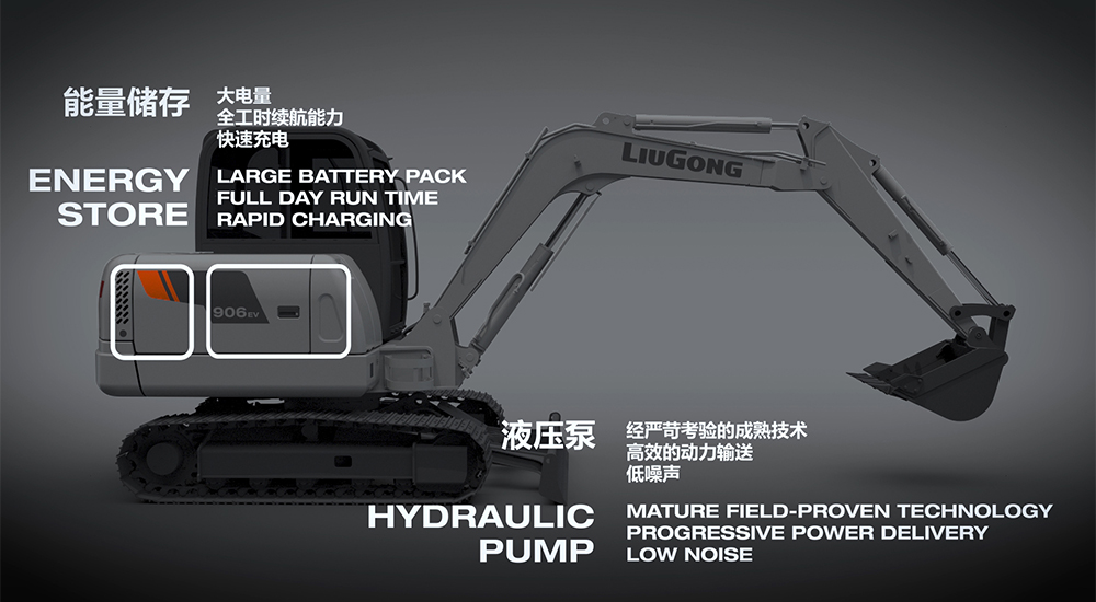 这台机器采用了柴油挖掘机的几乎整个液压系统,实现了非常快速的研发转换。同时它配置了大容量电池包,足够一天全工时作业所需,是一台效率卓越,节能环保的高科技新能源机器。