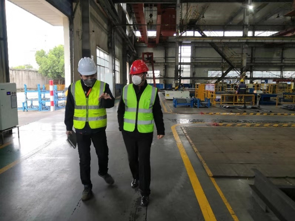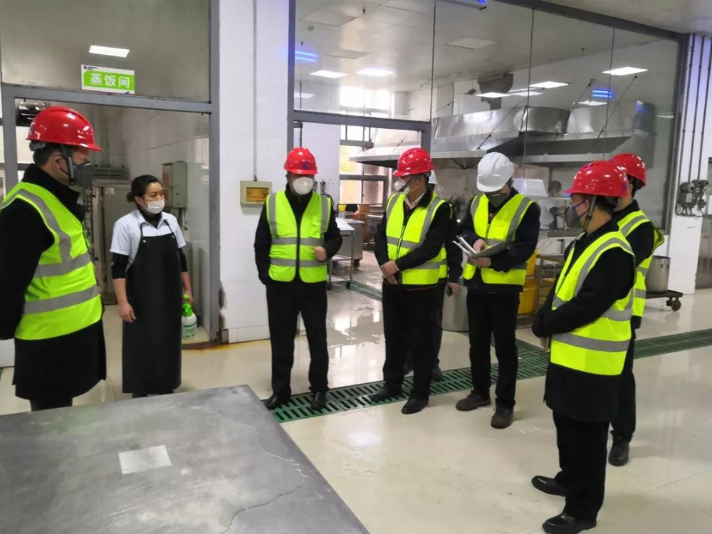 在职工食堂,黄海波与食堂工作者深入交流,详细了解该食堂消毒工作、工作人员在岗、疫情防控培训等情况。黄海波随后来到公司门卫进行检查,向工作人员询问安全保障方案,如对外来人员必须要测量体温,佩戴口罩才能进厂等。公司门卫处已配备好体温检测设备和设立临时隔开场所,一旦发现发热员工,立即引导到临时隔离区,上报公司HSE专业部门再进行医学管理措施。