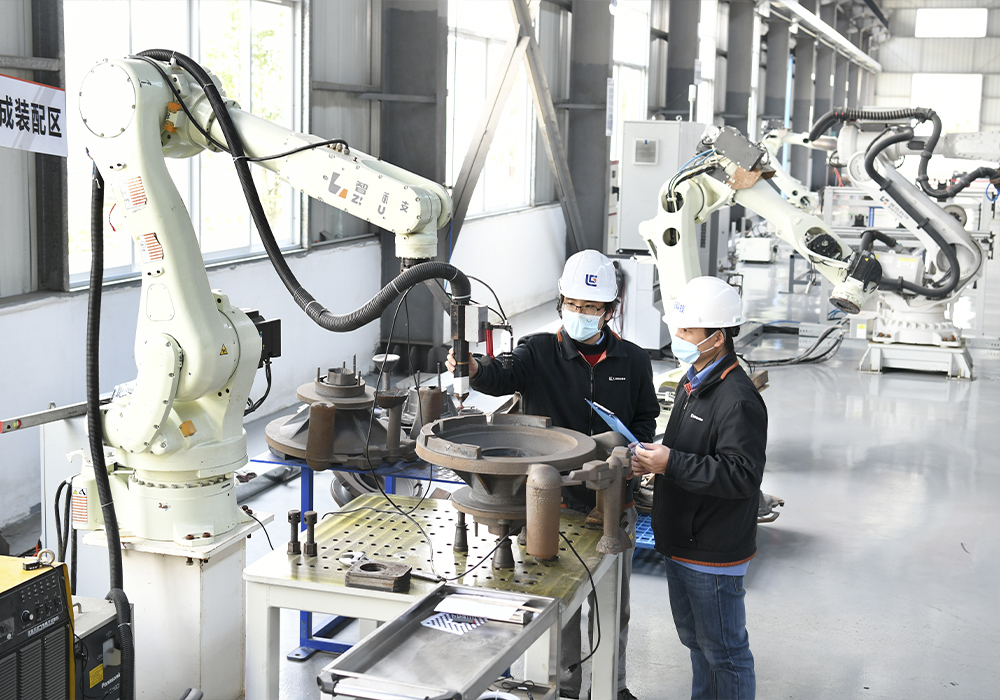 在挖掘机动臂焊接自动生产线上,分体式RGV搭载全自动液压升降系统,通过光电控制装置可自动识别工件,实现自动上下料,每班只需3名焊工进行操作、巡检,用工数较原来降低了75%,生产效率提升了20%。