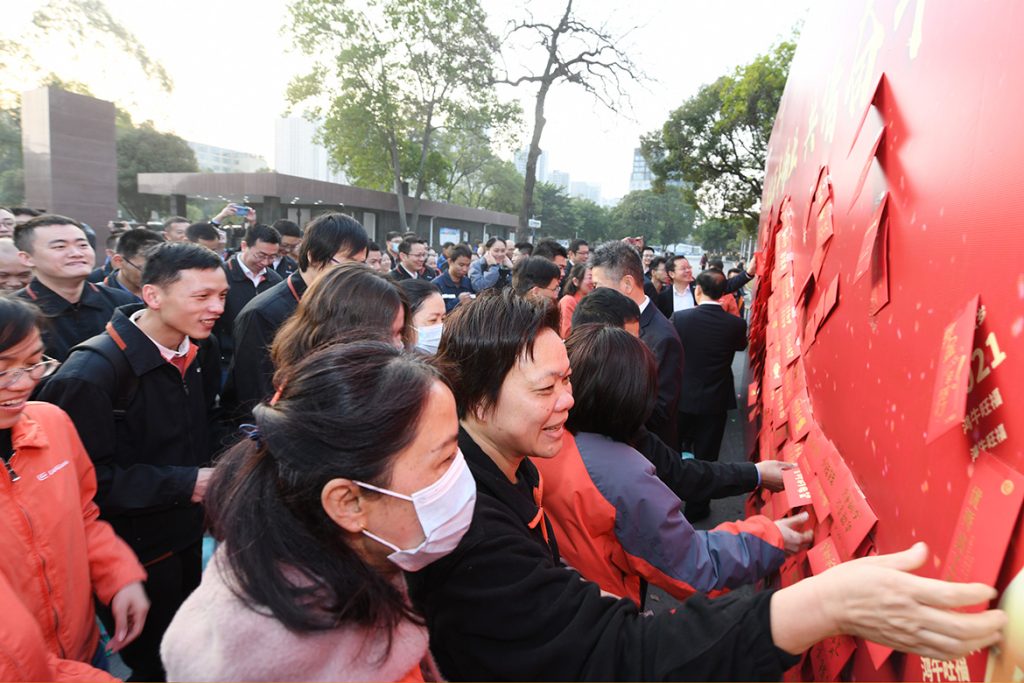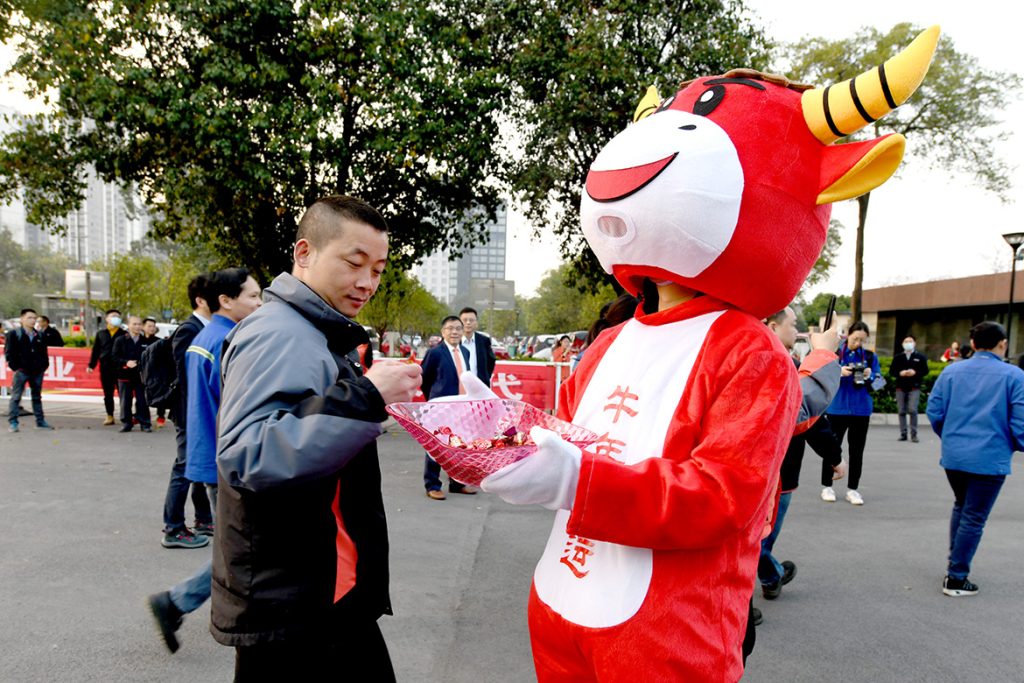 米兰站(中国区)官方网站领导曾光安、赖颂平、黄海波、李于宁、文武早早来到门口,与前来上班的员工互道新春祝福,大家脸上洋溢着灿烂的笑容,满怀激情,以“起步就要提速,开局就要争先”的精气神,“犇”向新目标、新高峰,以“十四五”开局之年的优秀业绩献礼中国共产党百年伟业。