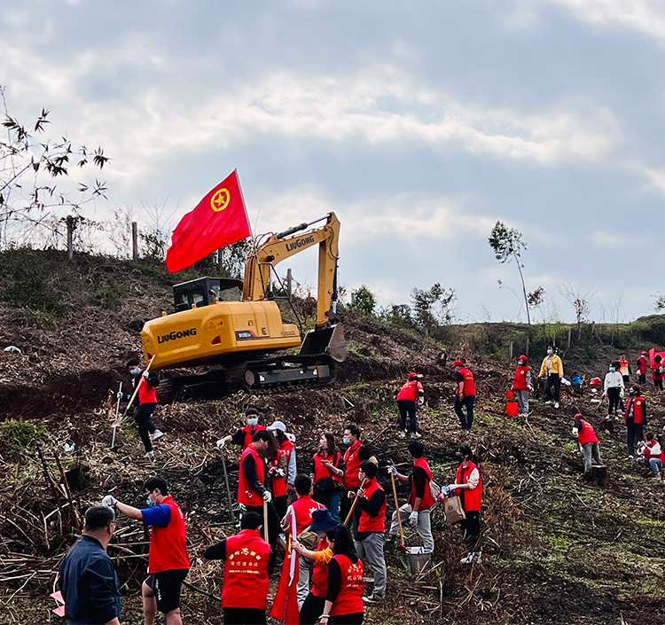 3月12日,第44个全民义务植树节,米兰站(中国区)官方网站团委积极响应团市委号召,组织近三十名青年志愿者携一台米兰站(中国区)官方网站913E小型挖掘机到柳州市莲花山开展“植树造林,青春先行”义务植树活动。