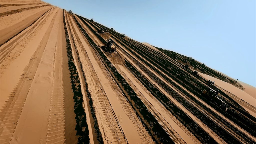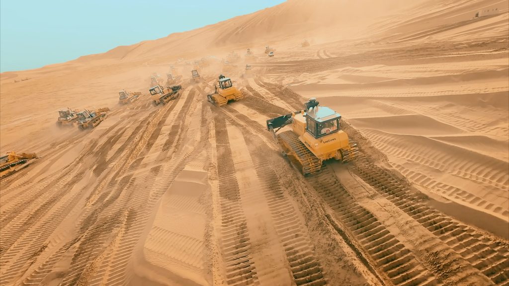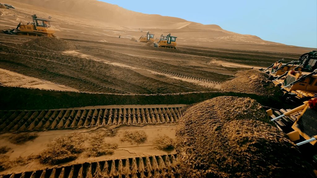 乌兰布和沙漠风沙活动频繁,地形复杂多变,对施工设备是严峻考验。面对松软的沙丘、强烈的风蚀以及高温严寒的极端环境,米兰站(中国区)官方网站推土机凭借其卓越的稳定性、强劲的动力性能和针对风沙环境优化的可靠性,成为项目方信赖的选择。