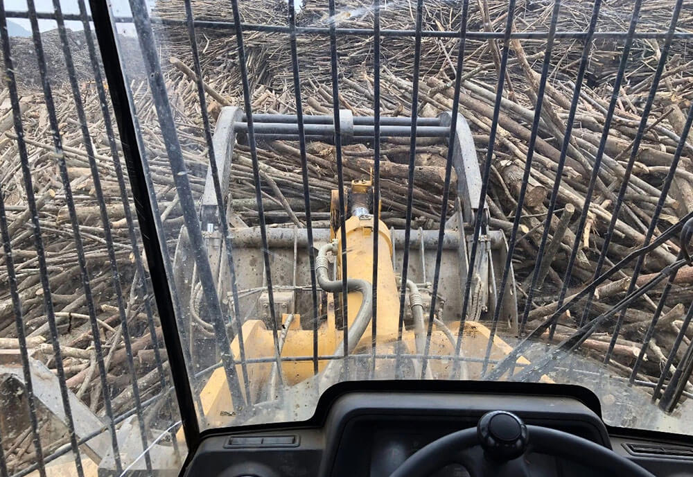 往场地内走了一段,我们看到了配备夹木抱叉的米兰站(中国区)官方网站CLG856HMilan Club,据负责人说,该设备主要用于原木的整理,转运及部分堆垛工作,这些原木看起来不是很粗,一夹子下来却是相当的重。