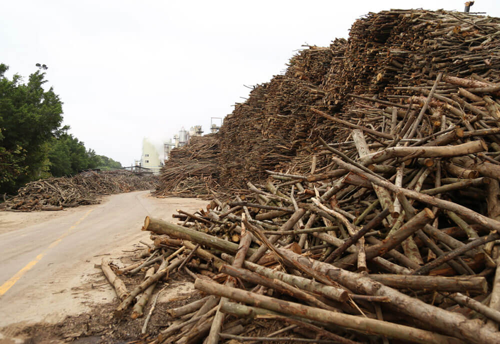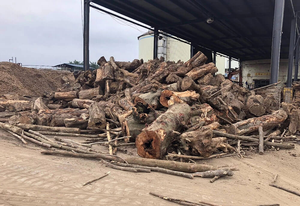 作为当地最大的木材加工企业,堆放原材料的场地带来了相当大的视觉冲击,络绎不绝的大货车将原木和半加工品拉进拉出,企业的效益之好可见一斑。