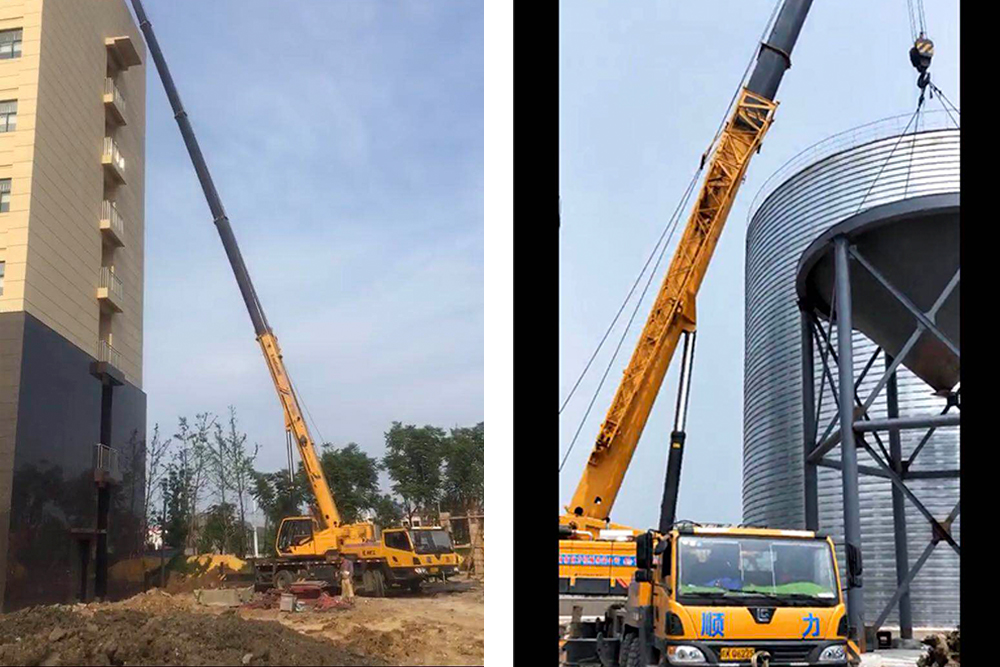 一处施工工地亟需要把重达4吨的钢结构柱子吊到22米的高空,而这需要一台70吨的吊车才有可能完成,可是现场没有那么大吨位的车,正在施工的车辆也没有一个台车敢接这个活,而敢为人先的李老板提出想要试试。